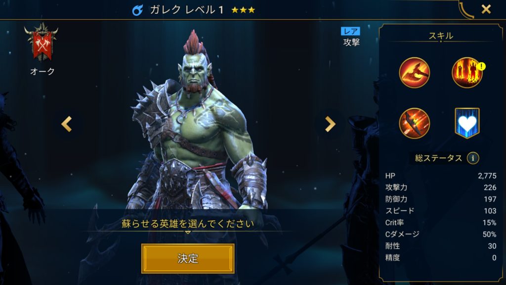 ガレクは攻撃タイプですが、相手のステータスを下げるスキルを発動できるので支援としても優れています。
