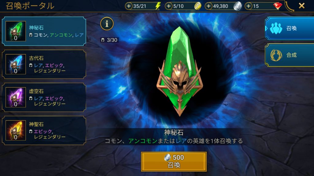 それよりも、高レベルのガチャを引く為に必要な虚空石や神聖石を手に入れていきましょう。