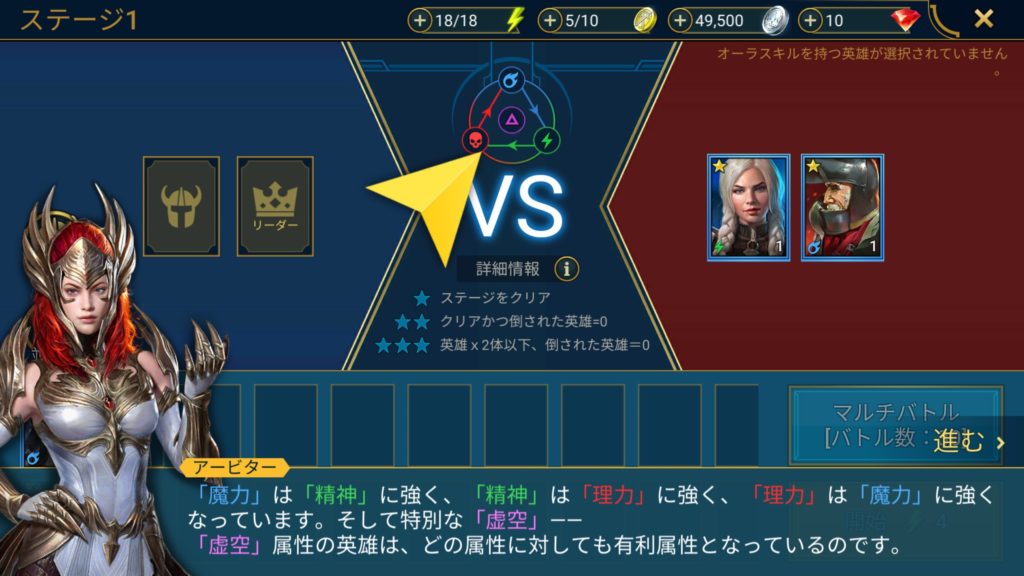 またキャラクターにはつの属性があり、上記の画像のように、相性が設定されています。