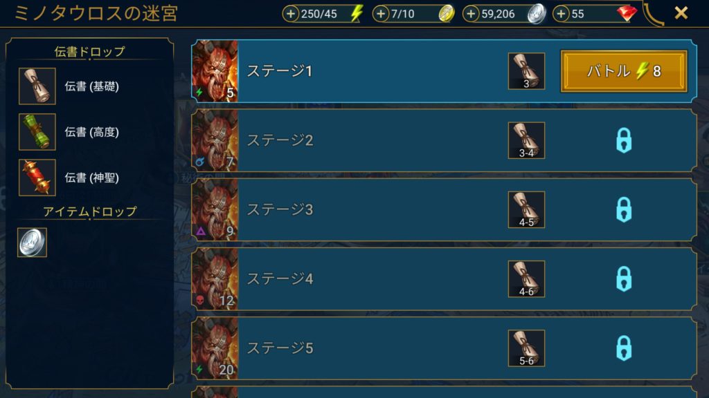 秘伝とは、ミノタウルスの迷宮をクリアして手に入れることが出来る伝書を使用して、キャラクター(英雄)のステータスやスキルを強化する育成方法です。