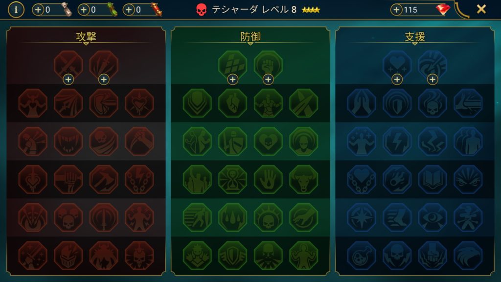 スキルの強化方法はこのほかに同じキャラクターを犠牲にする方法がありますが、レア度の高いキャラクターはなかなか揃うことがない為、先ほどのアイテムで強化することが主流になりますので、序盤のうちから使わないように気を付けてください。