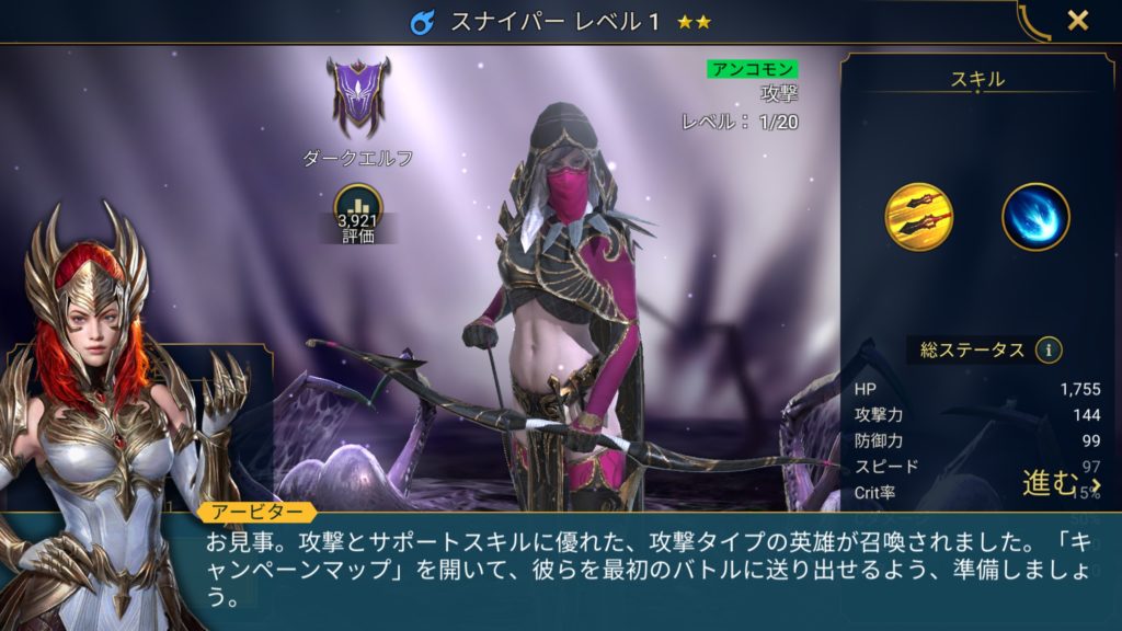 選択後にはすぐにガチャを引きますが、ここではスナイパーというキャラクターが出るようになっています。