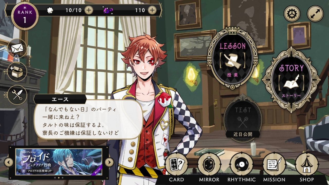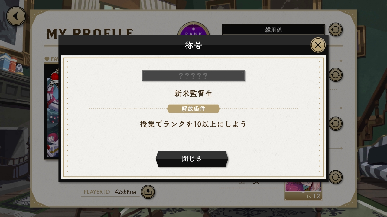 プレイヤーのレベルはランクと呼ばれ、ストーリーを進めたり授業をこなしていくことで上がります。