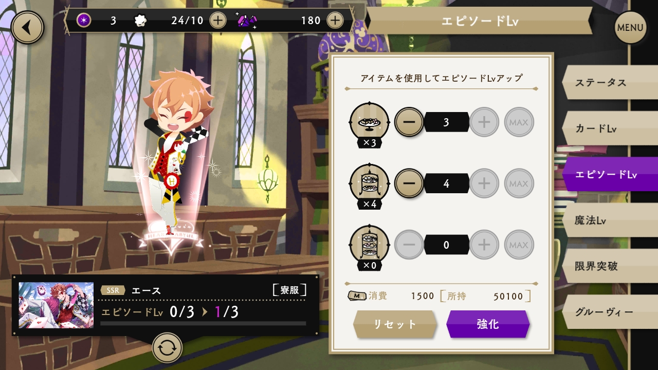 お気に入りのキャラのカードは積極的にエピソードレベルもあげていきましょう。