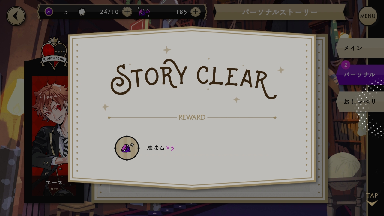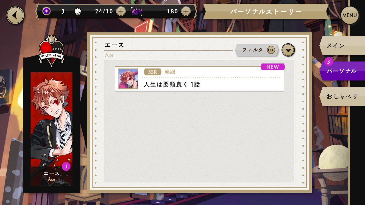 エピソードはホーム画面やメニュー画面からストーリーを選び、パーソナルストーリーという所から見ることができます。