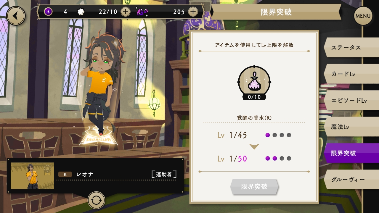 カードレベルは魔法史の授業で得られる「開花の蜜」、エピソードレベルは飛行術の授業で得られる「内緒のおやつ」を使用することで、大きく経験値を得られます。