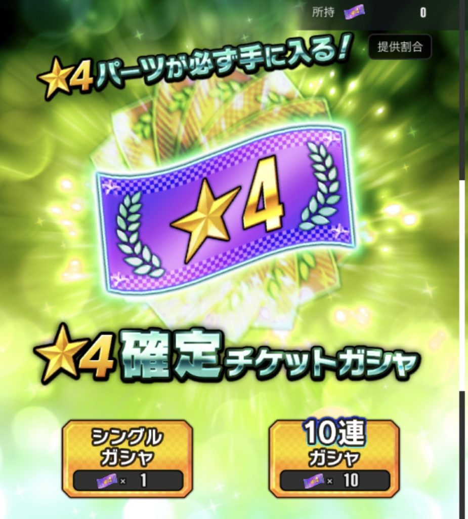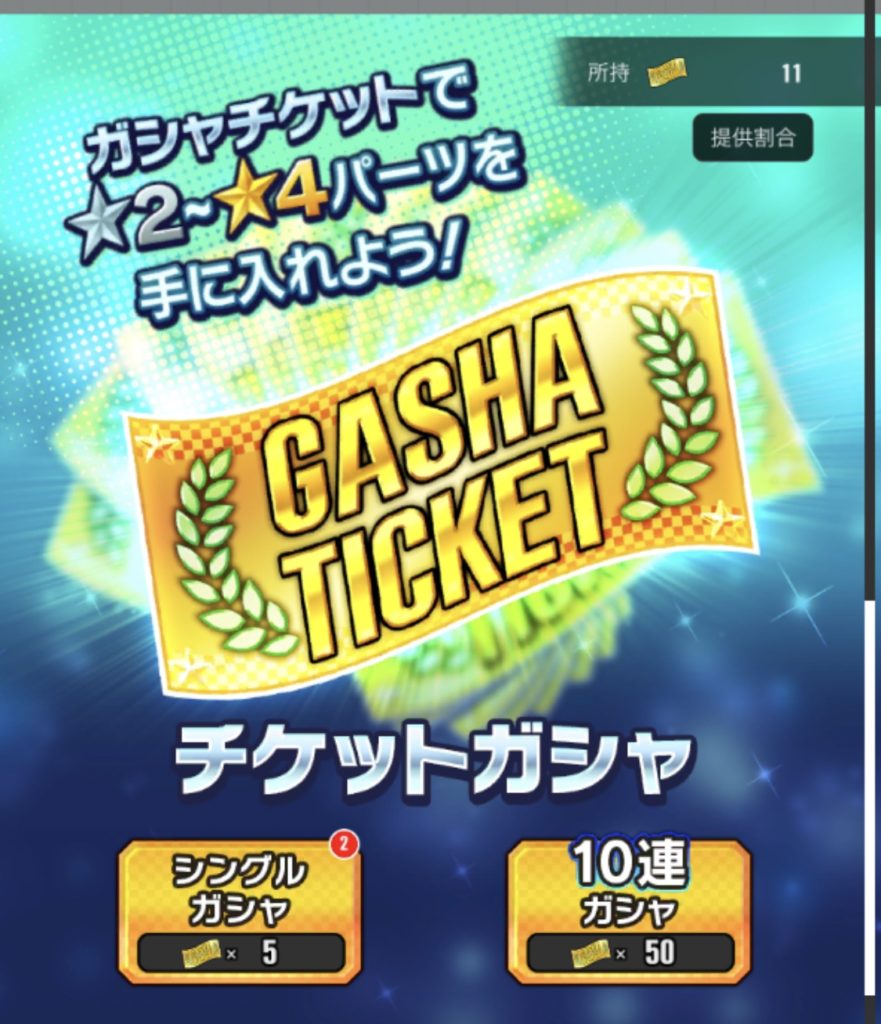 チケットガシャは★2~★4のパーツが入手可能です。