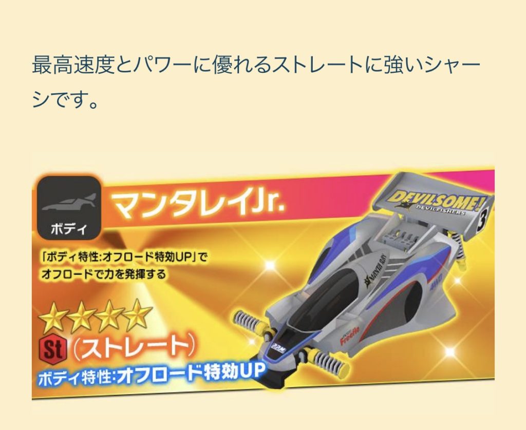 シャーシでかなりタイムを縮めることができるので、コースをよく観察をして適したシャーシを選びましょう。