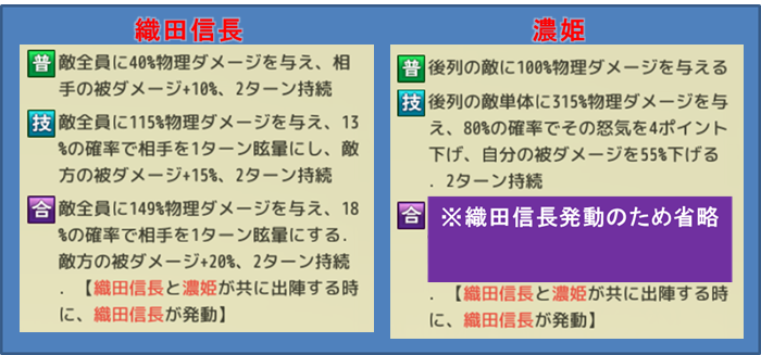 例えば、黒田官兵衛なら竹中半兵衛と濃姫と共に布陣設定をすると能力が上昇します。