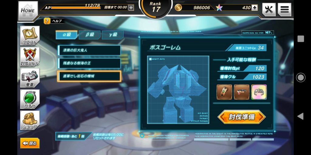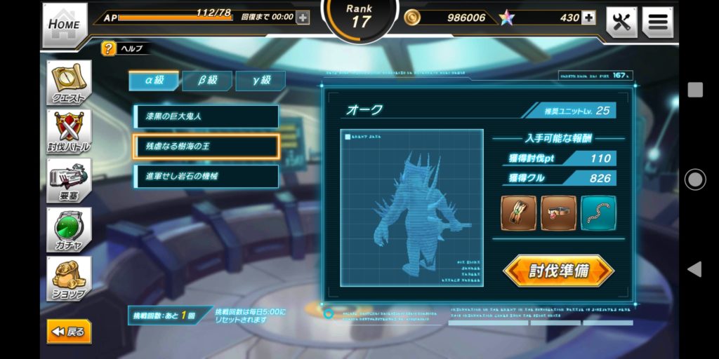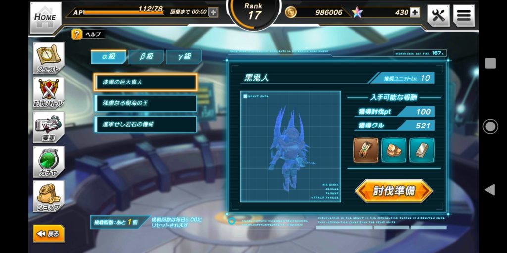 討伐は1日2回までとなり、やり直しが不可能となっています。