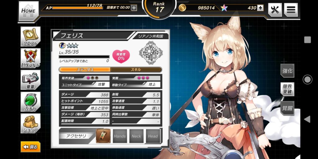 高火力のキャラを何体も欲しい状況が多くあるのでフェリスの育成をほっとらかしにしないようにしましょう。