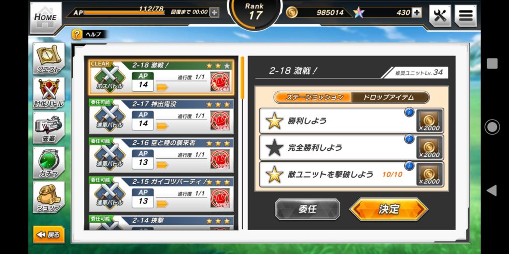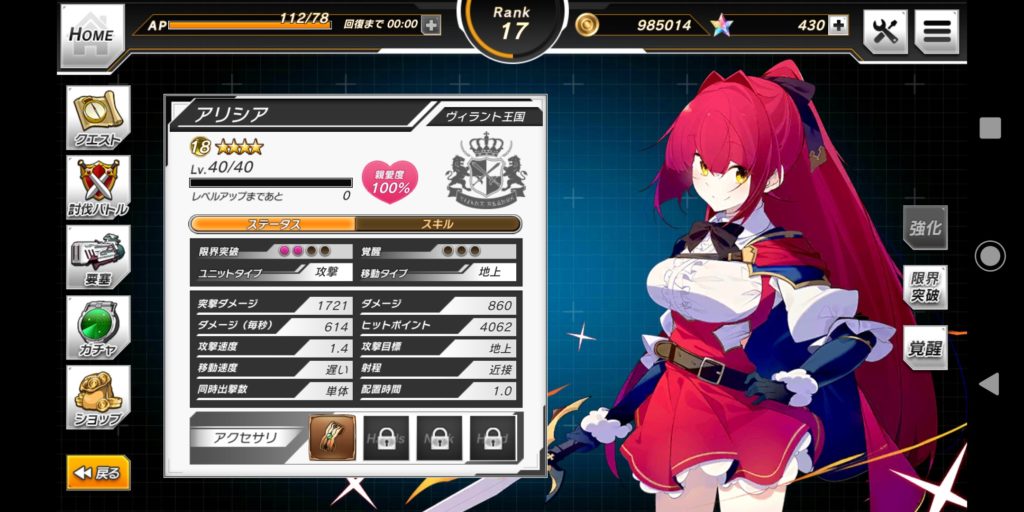 アリシア」と「フェリス」は必ずパーティに入れておき育成をしておくとメインクエストは簡単にクリアは可能です。(2-18は除く)