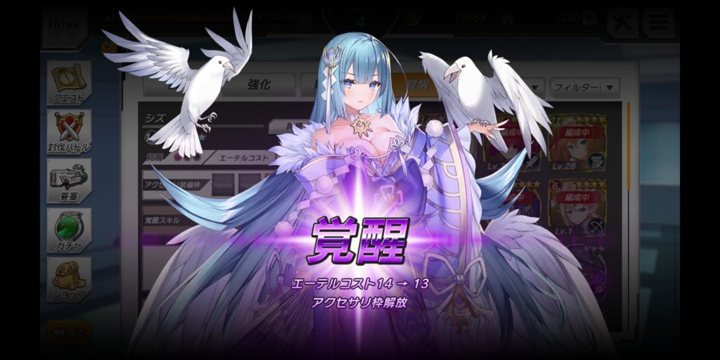 キャラを覚醒することで「覚醒スキルの開放」や「出撃エーテルのコスト軽減」「アクセサリの装備枠増加」など恩恵が大きいです。
