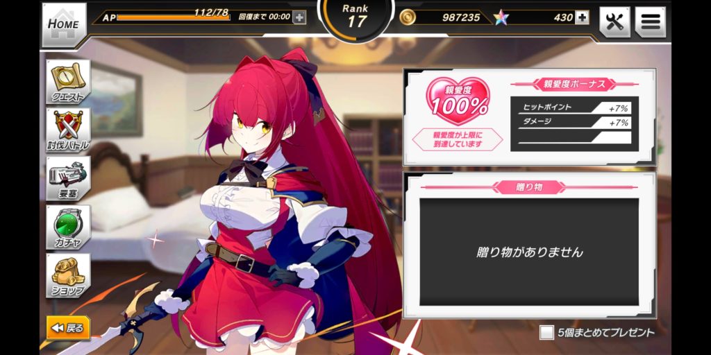 プレゼントアイテムは主に曜日クエストで獲得でき、難易度によってプレゼント獲得数も変わっていきます。