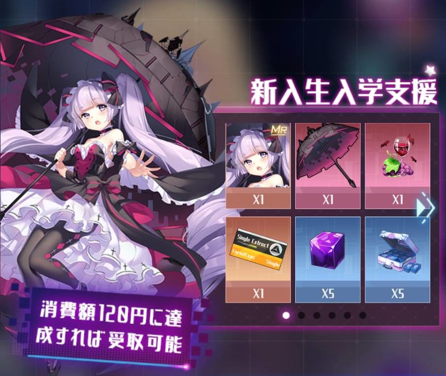 また、初回課金時のみ、120円で「新入生入学支援」として6種類のアイテムが配布されます!