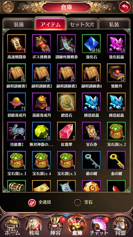 レア度の高い副将には、当然大量に必要となるので、その時が来るまでいっぱい貯め置くことをお勧めします。