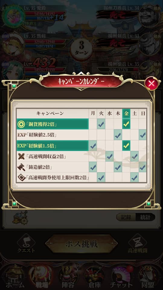 経験値上げを重視するんであれば、高速戦闘券と経験値をより多くもらえる日に使うことをお勧めします。