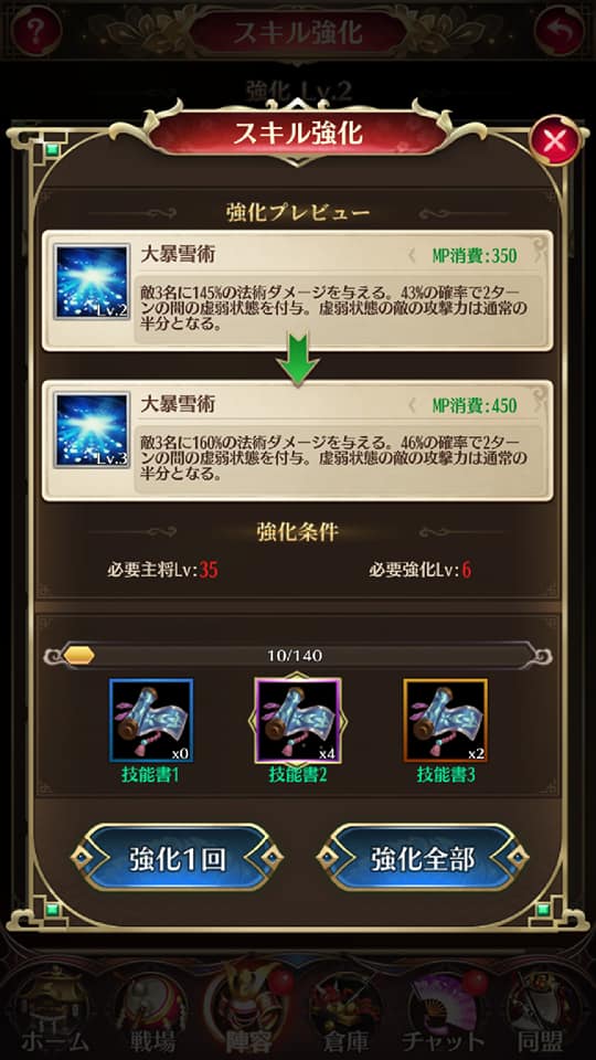レベルを上げれば上限も上がりますので、副将をさらに強化することができます。