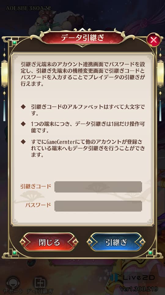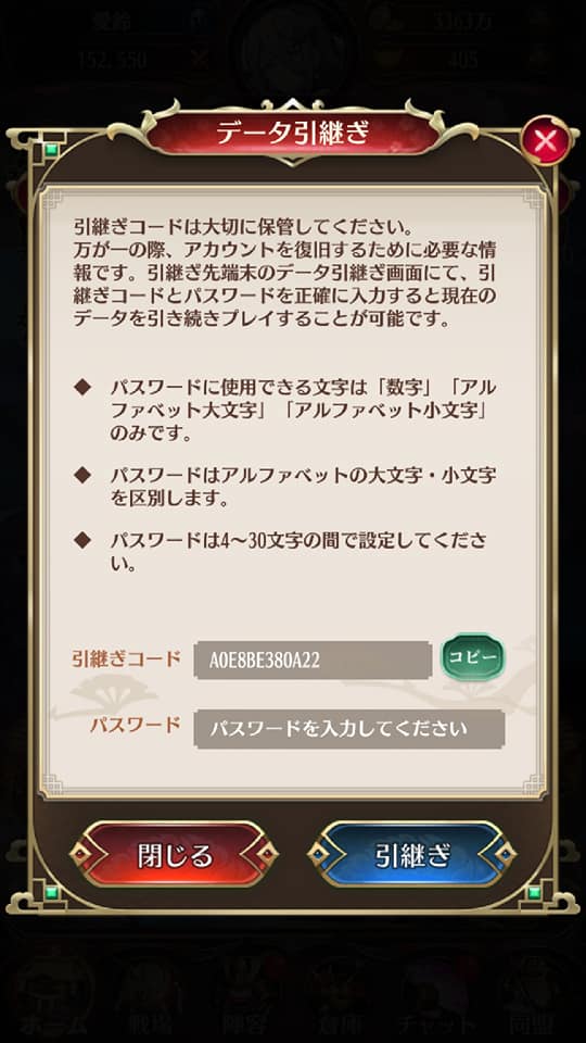 記載されている「引継ぎコード」をコピーし、パスワードを作成すれば準備完了です。