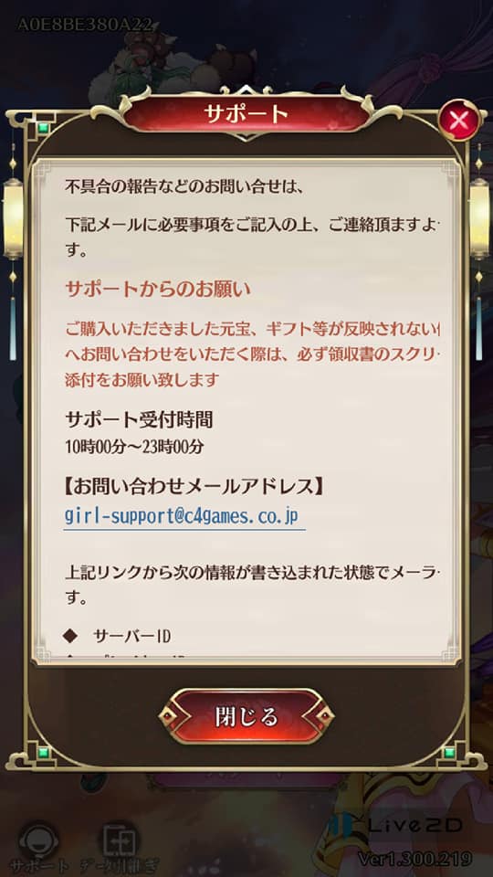 アカウントが削除せれてしまったり、元宝や銅貨が紛失したり、のような時は、すぐさま連絡ですね。