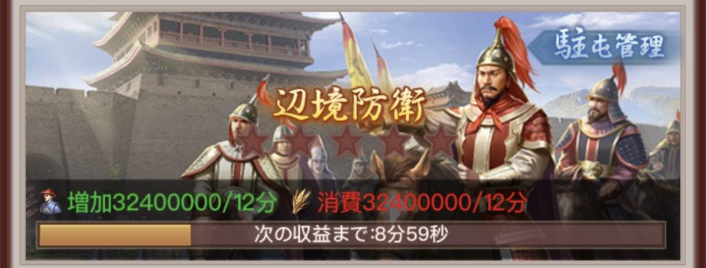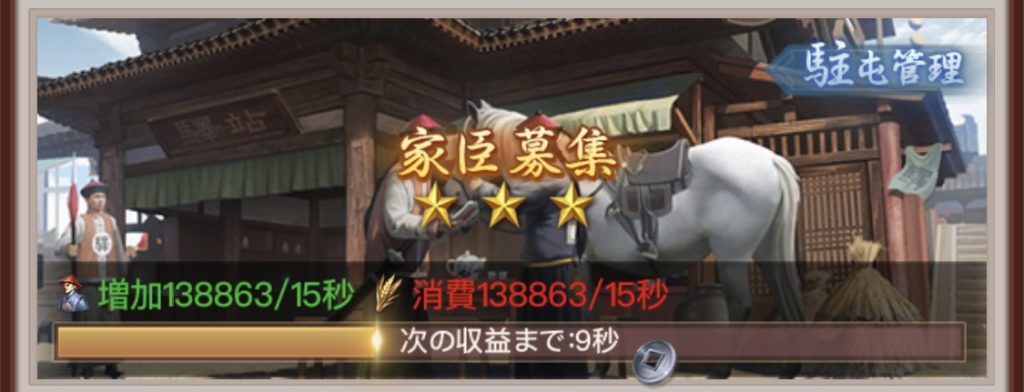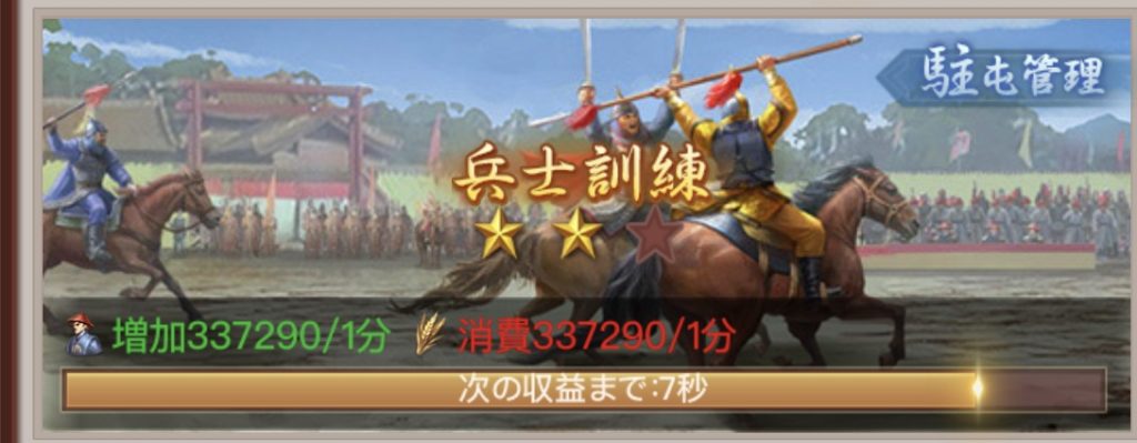 食糧は資産経営の『屯田』、『ダム建設』、『民情視察』などで増加をします。