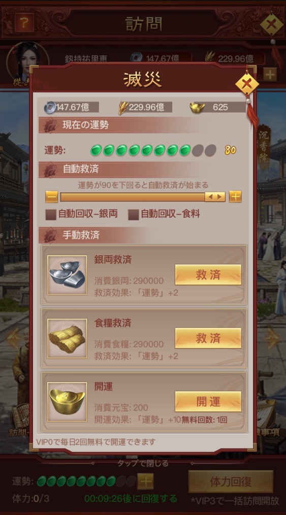 食糧の消費方法・使い道は『資産経営で兵士増加』、『訪問での運勢上昇』この2つです。