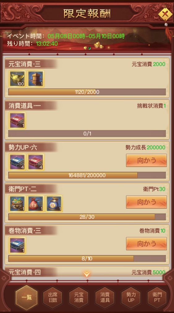 限定報酬の『元宝消費』をクリアすると元宝が獲得できます。