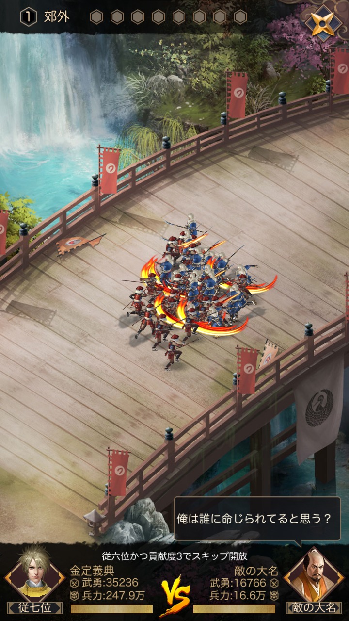 本アプリでは課題をクリアすることによって様々な報酬を貰うことができ、その報酬を使い家来を育成し勢力などを増強して序盤をガンガン攻略することが可能となっております。