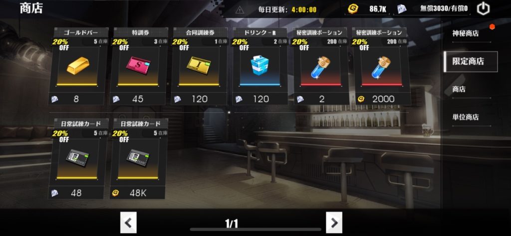 商店は、『神秘商店』『限定商店』『商店』『単位商店』があります。
