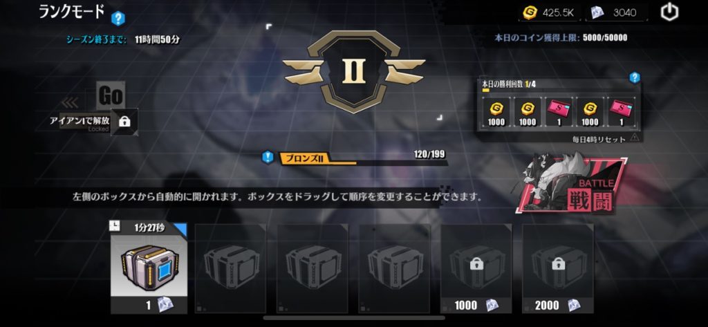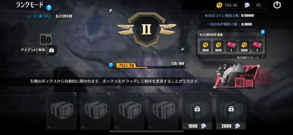 ランクモードは戦闘で勝利をするとランクポイントとボックスを獲得することができます。