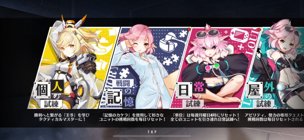 タイムリフレインには、『個人の試練』というユニットのスキル、コンボなどのバトルの練習ができるコンテンツがあります。