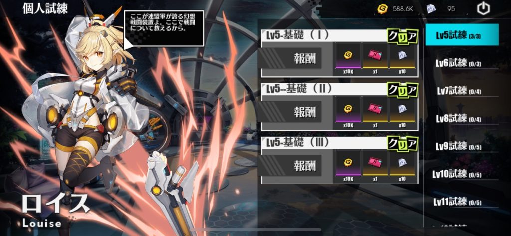 レベル5〜レベル6までは3つずつ試練、レベル7〜レベル8までは4つずつ試練、レベル9〜レベル30までは5つずつ試練があります。
