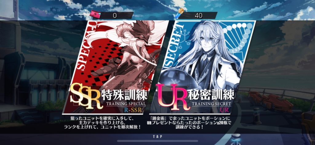 特殊訓練はSSRユニット、秘密訓練はURユニットの欠片を獲得することができます。