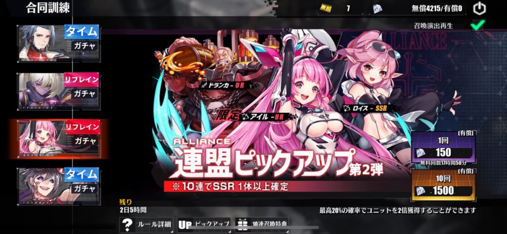 ガチャは2種類あります。(タイムガチャ:2つ、リフレインガチャ:2つ)