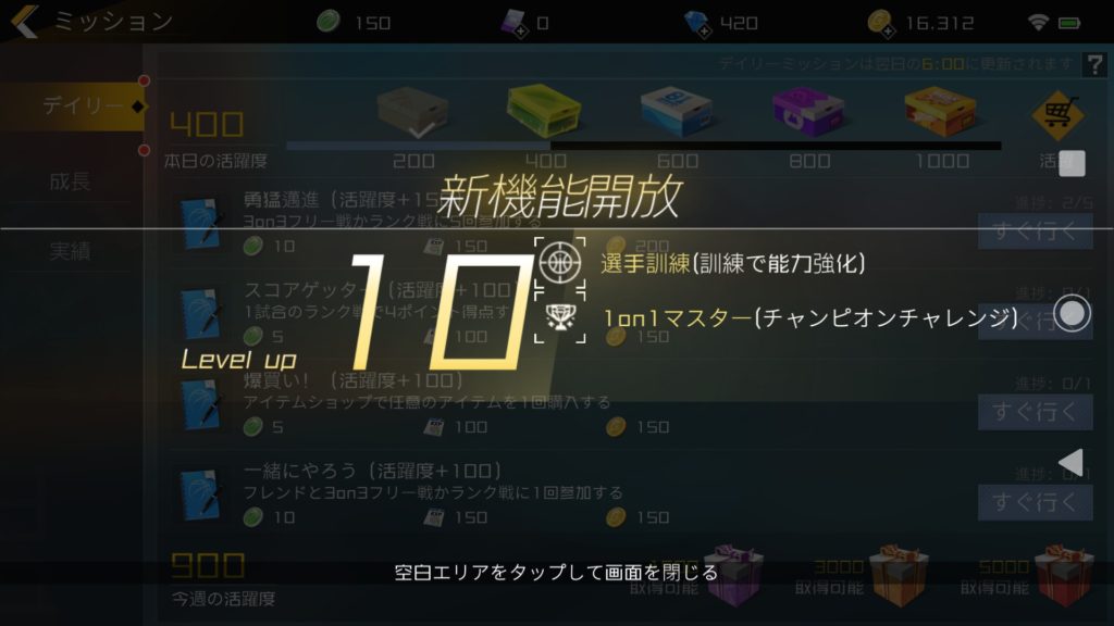 他にも、プレイヤーランクが上がると様々なコンテンツが解放されていくのでプレイヤーランクも着実に上げて行きましょう!