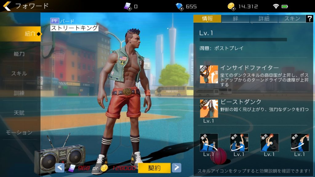 ポストプレイが得意なバードは、全てのダンクスキルの命中率を上げる『インサイドファイター」という特性をもっています。