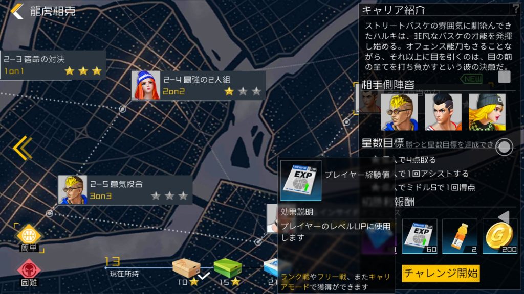 シティダンク2では、プレイヤーレベルキャラクターレベルの2種類のレベル概念があります。