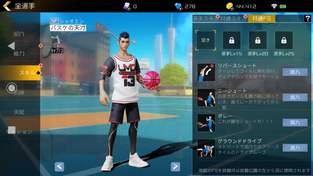 スキルには「選手スキル」「共通スキル」「共通FS(フリースタイル)」の3つの種類が存在します。