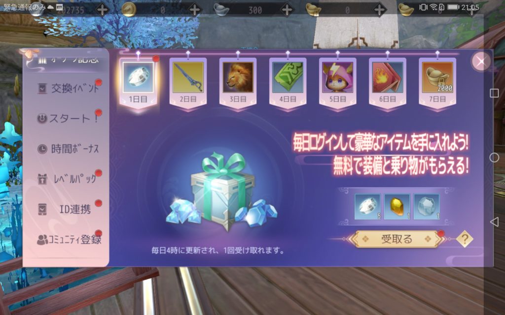 5日目のログインボーナスはレアペットとなっていてとても楽しみです。