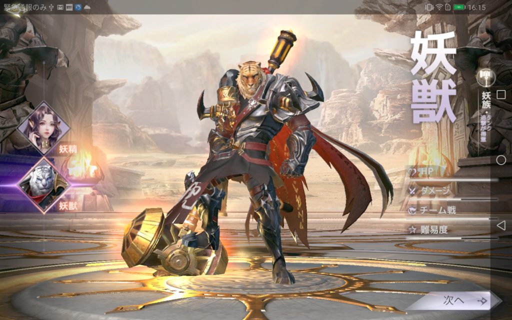 妖獣は、前線で盾の役目もできる守りの要タイプ、野獣モードに変身し敵に襲い掛かります。