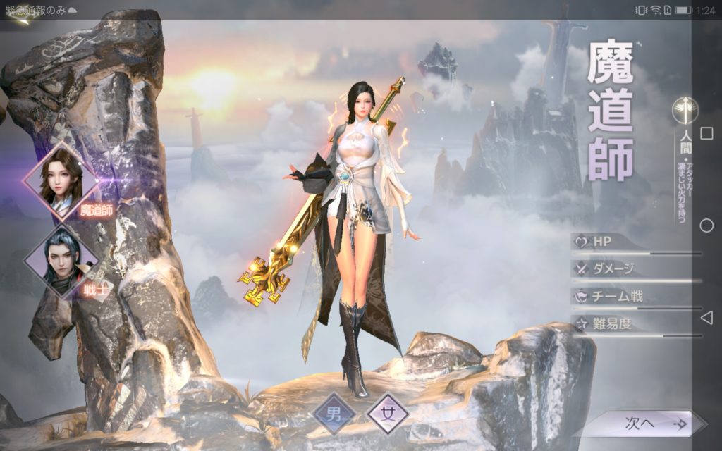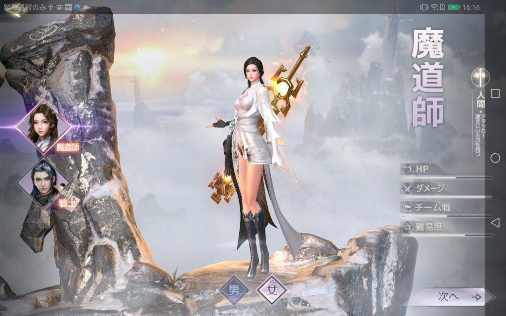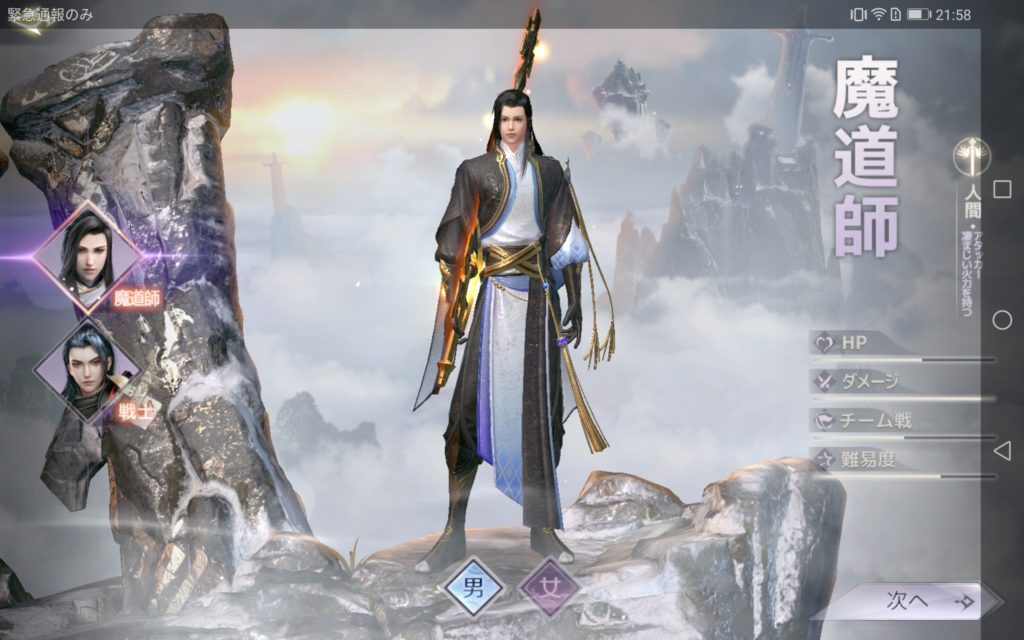 魔道士は火力遠距離アタッカーで男性・女性の選択が可能となっています。
