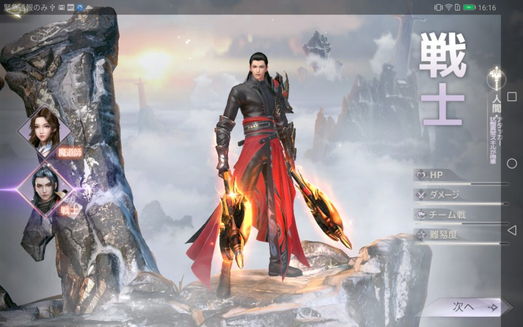 戦士は近距離アタッカーで男性のみ選択可能です。