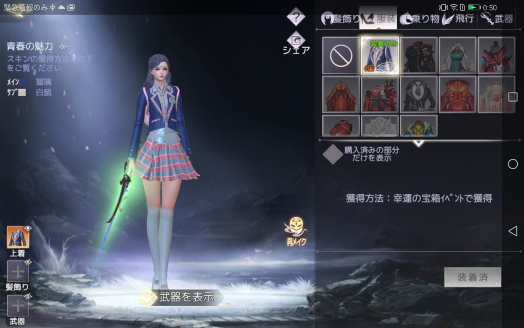 衣装も数種類用意されているようです、ガチャからも排出されますし中にはレアも混ざっているようです。