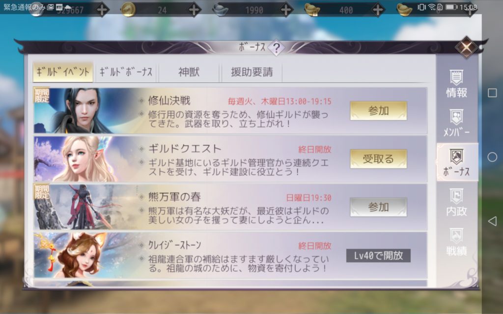 ギルド専用のボーナスなどが用意されているようですのでギルドへの参加は是非、お勧めします。