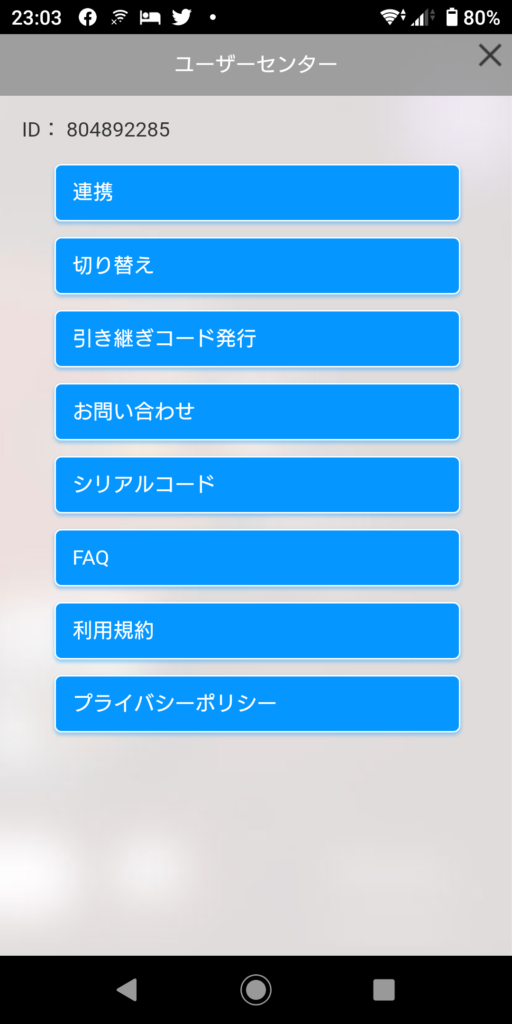 このシリアルコードは、ホーム画面上のメニュー一覧にある「ユーザーセンター」からシリアルコードを入力することができます。