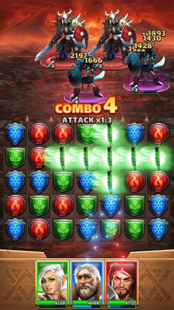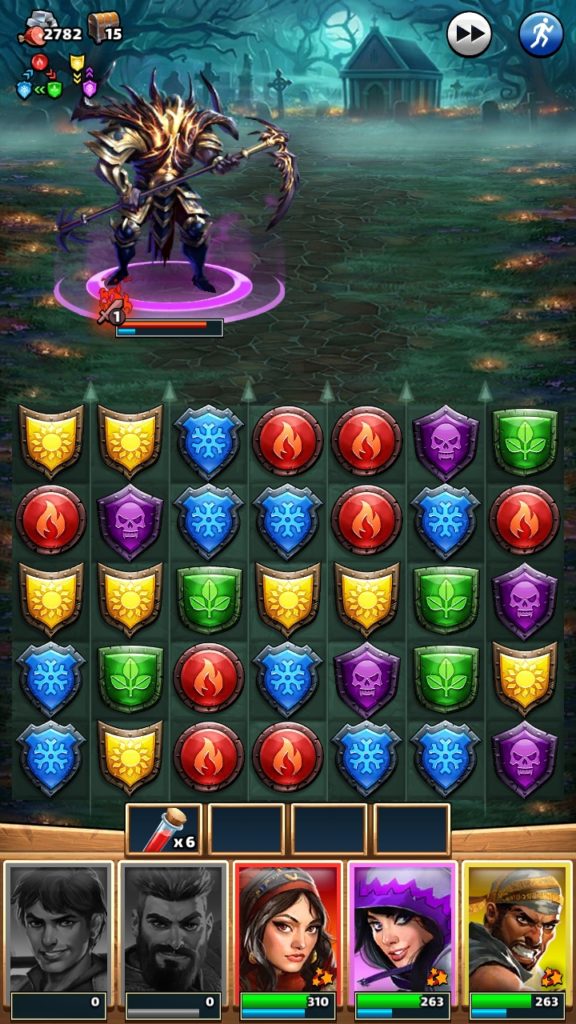 英雄が倒れてしまうと、その属性のパズルを消してもまともなダメージが入らなくなります。