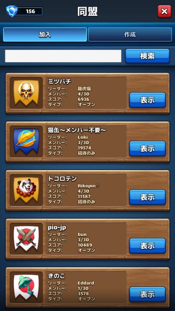 新たな同盟を作成する場合はジェムが50個必要です。