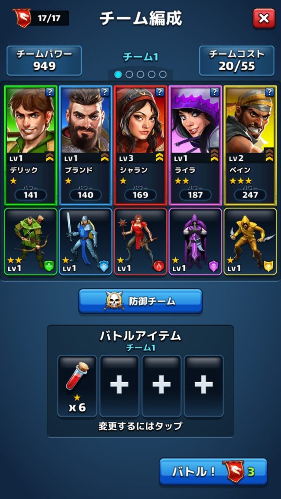本ゲームでは英雄の体力はそれぞれ別々になっているため、攻撃が集中するとあっという間に削られてしまうこともあります。
