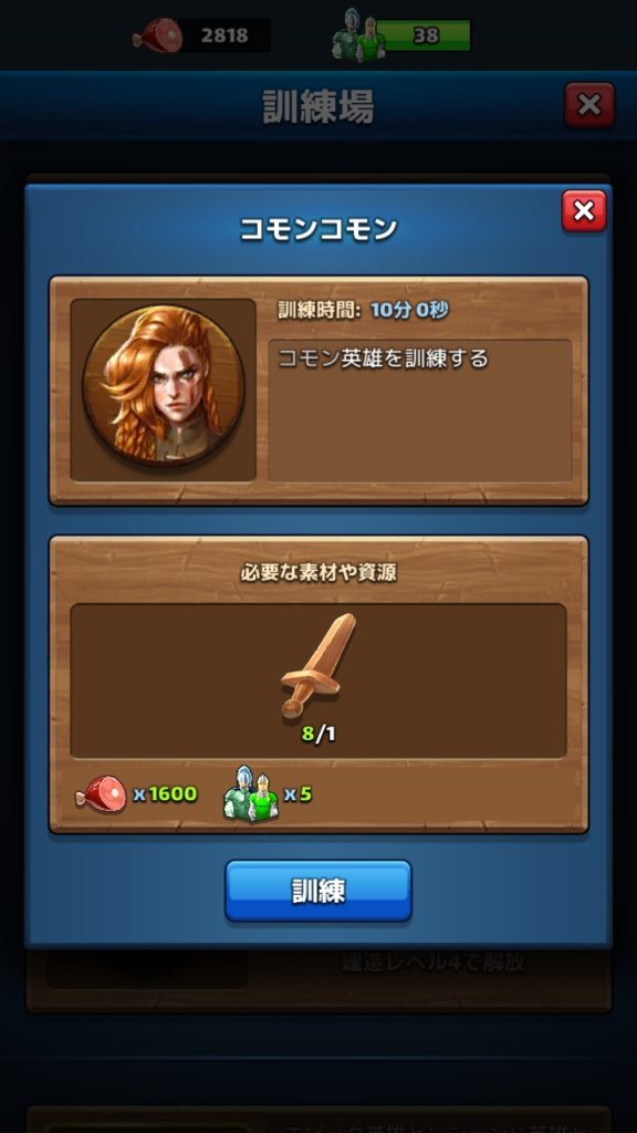 英雄はガチャ以外にも訓練場で入手でき、訓練場のレベルを上げることでレジェンドの英雄まで訓練できるようになります。
