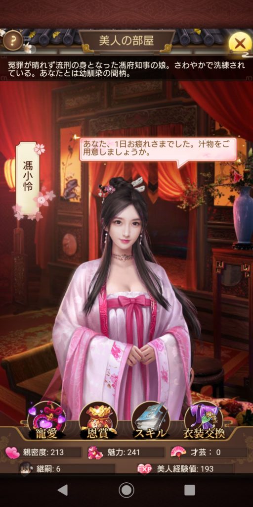 先ず、親密度が上がるとその対応する門客のスキル(美人スキル)が開放されていきます。